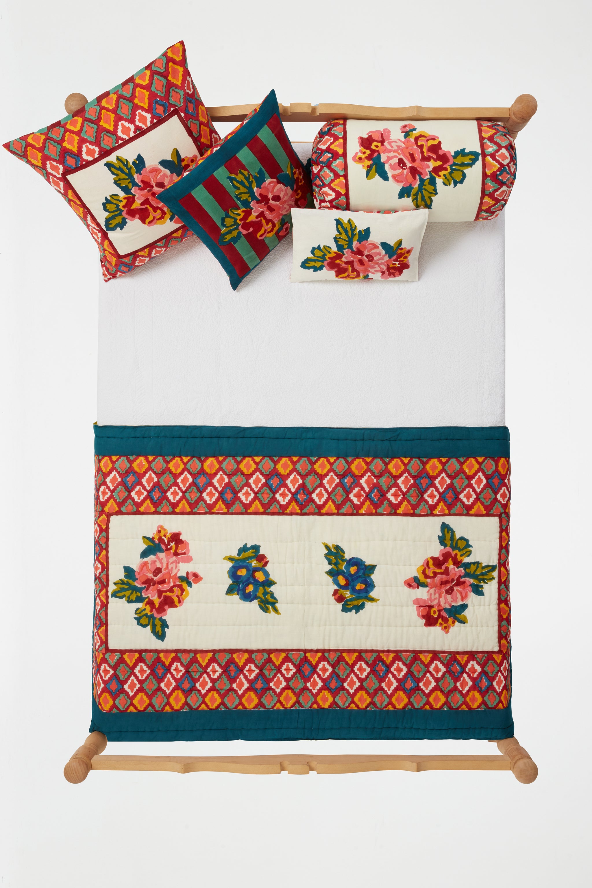 Lisa Corti Junior Reversible Quilt Bouque Cream 43" x 71"